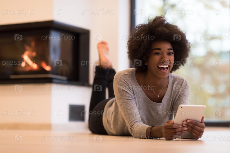 Женщина с планшетом у камина