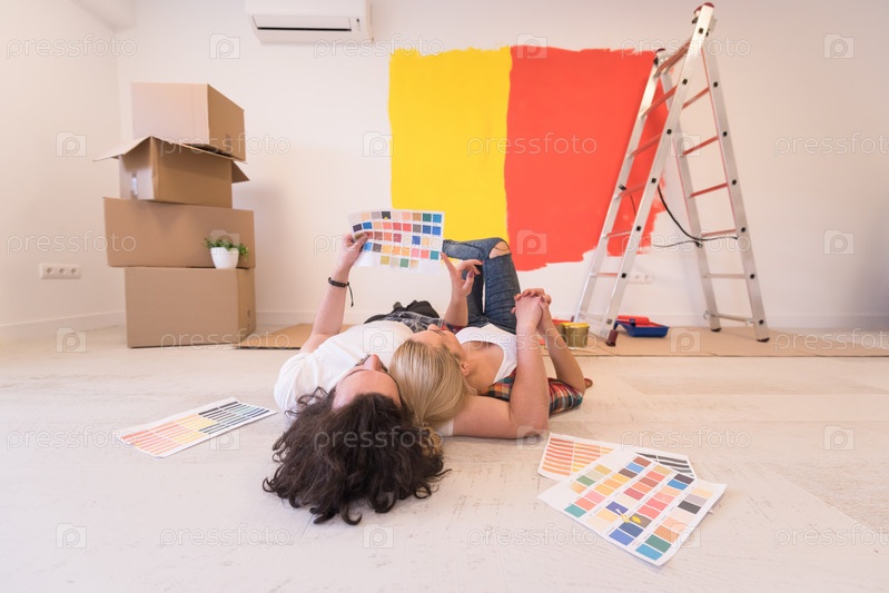 Счастливая молодая пара в новом доме