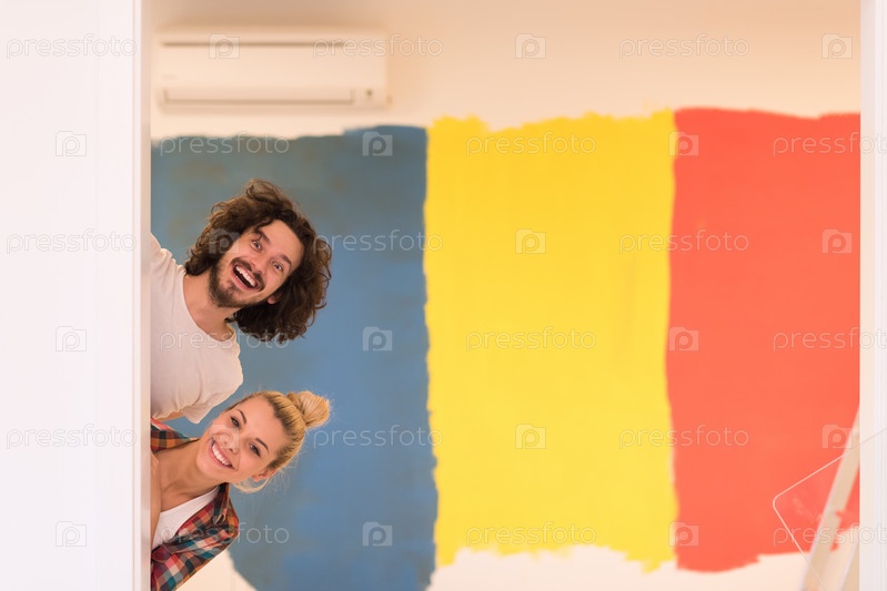 Счастливая молодая пара в новом доме