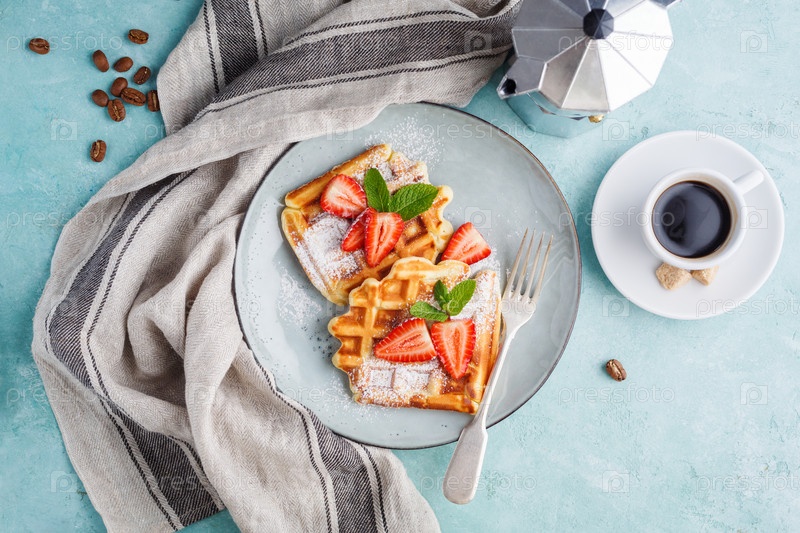 Домашние вафли с клубникой