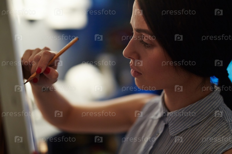 Вдохновленная молодая женщина рисует на холсте