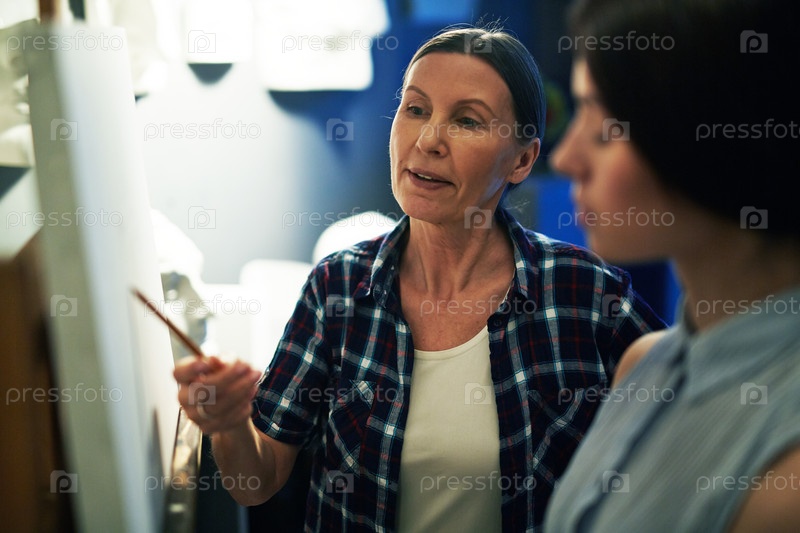 Преподаватель учит рисовать