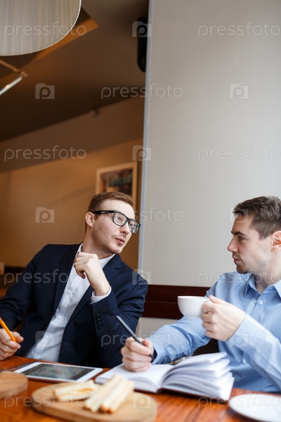 Два молодых человека, разговаривающих в кафе