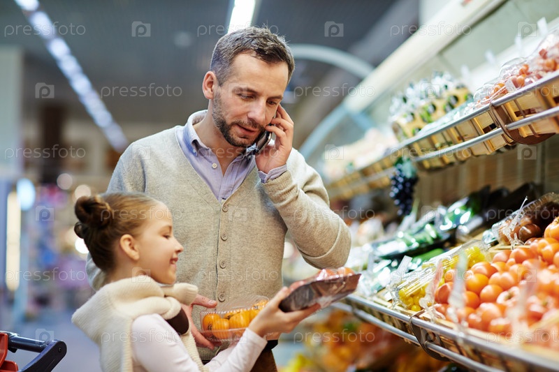 Мужчина, звонит жене из бакалейного магазина