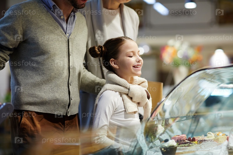 Семья выбирает десерты в кафе