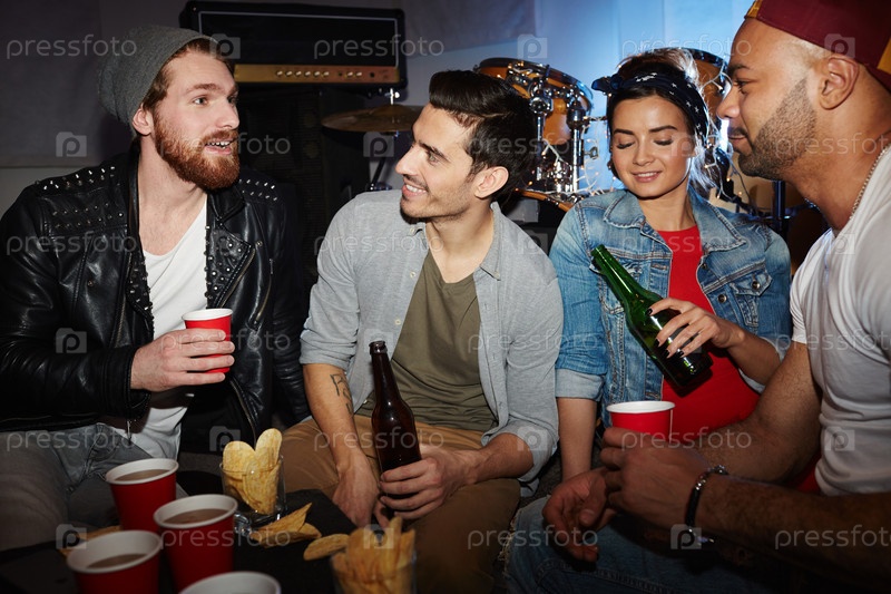 Модные молодые люди пьют пиво в клубе