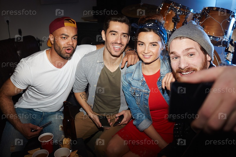 Улыбающиеся друзья позируют для себя в ночном клубе