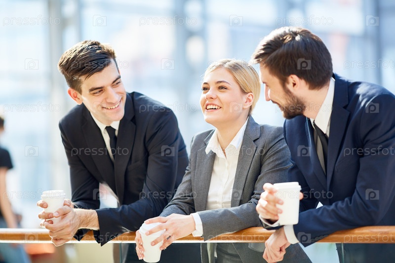 Веселые деловые люди на перерыве