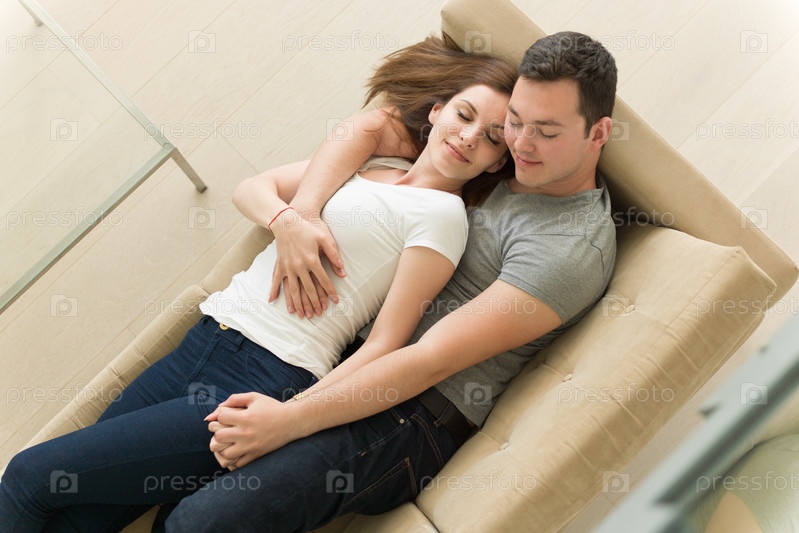 Счастливая пара на диване