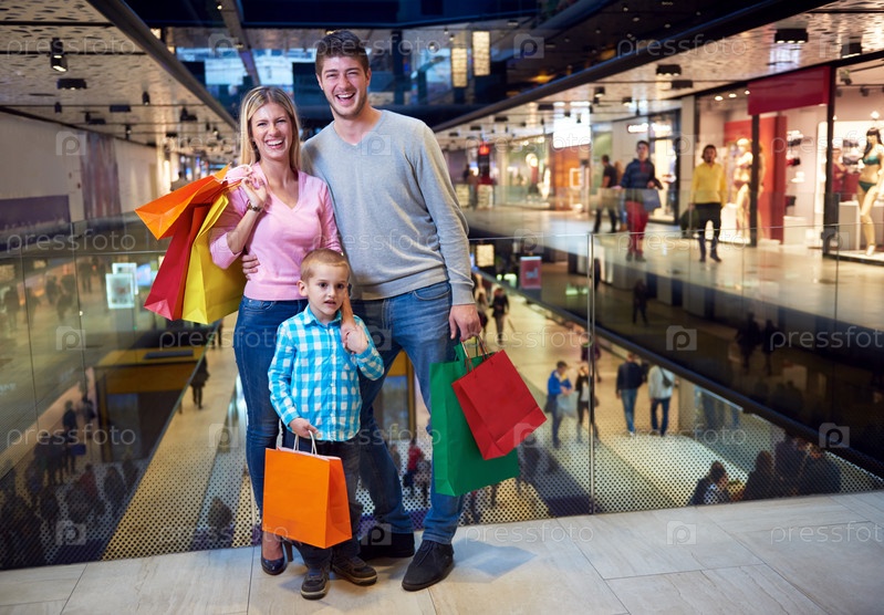 Молодая семья с покупками