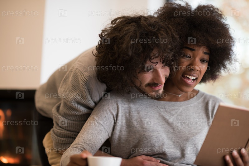Счастливая пара с планшетом