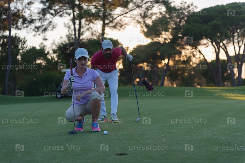 Пара на поле для гольфа на закате