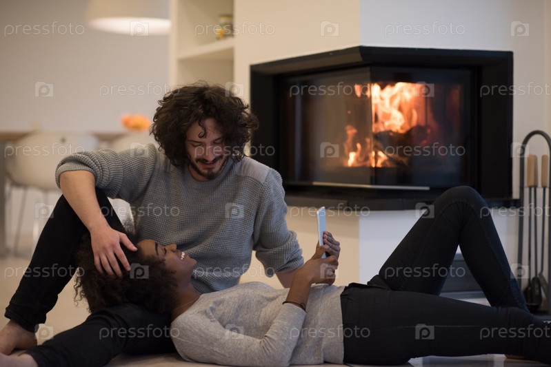 Счастливая пара у камина