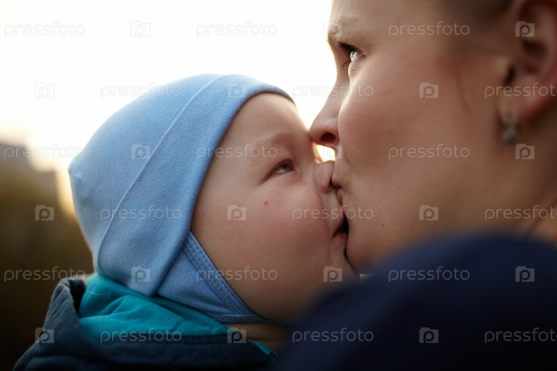 Мама целует своего сына