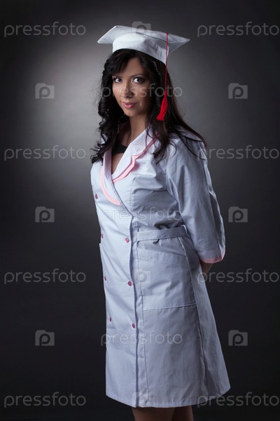Молодая привлекательная брюнетка в медицинской одежде