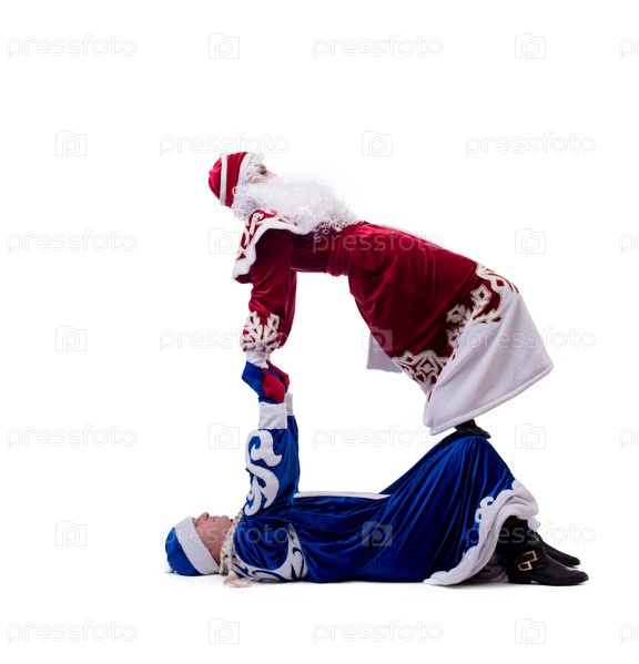Акробатические исполнители в новогодних костюмах