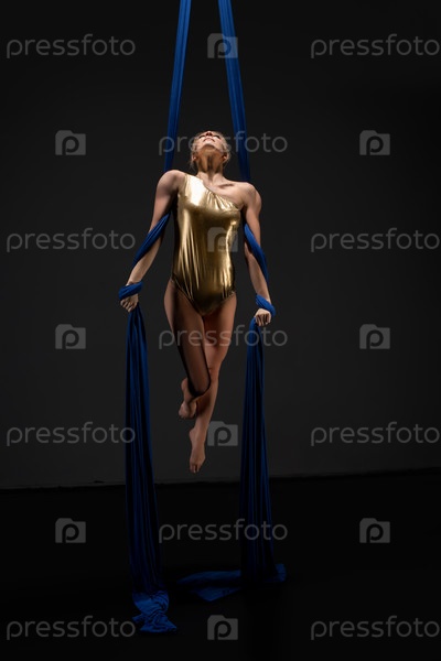 Сексуальная девушка в золотом на воздушном шелке