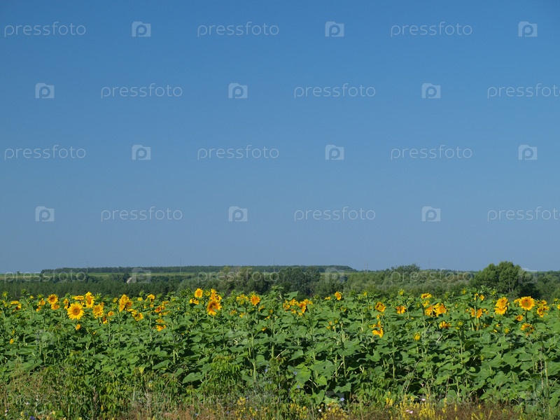 Подсолнечное поле и лес вдали