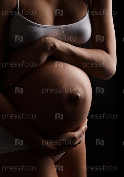 Беременная женщина держит живот