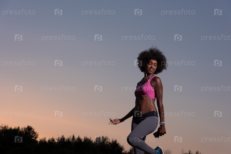 Черная женщина делает упражнения на растяжку
