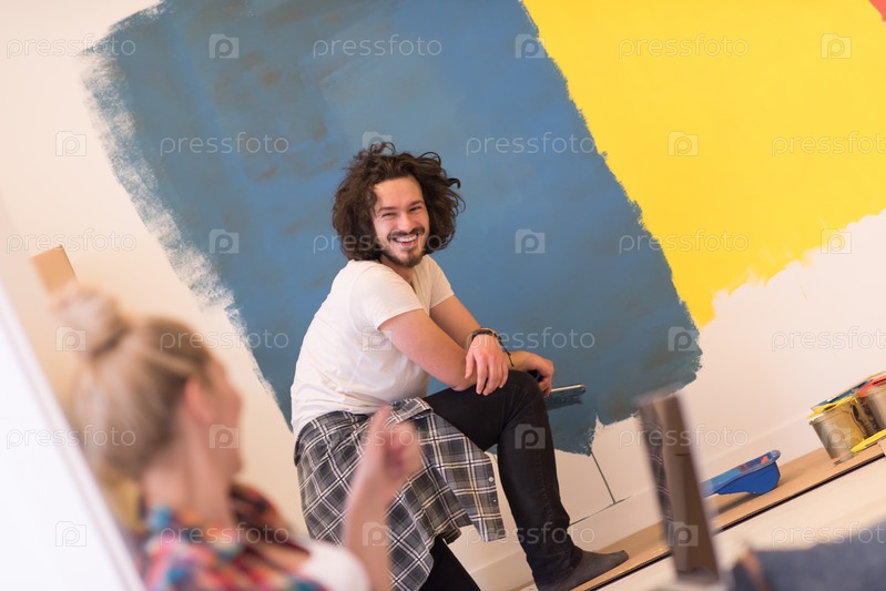 Счастливая пара делает ремонт
