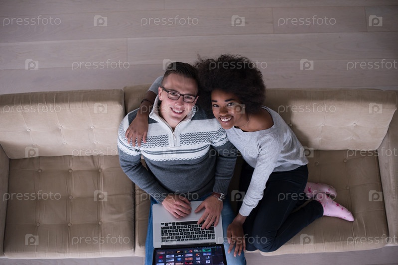 Счастливая пара за ноутбуком