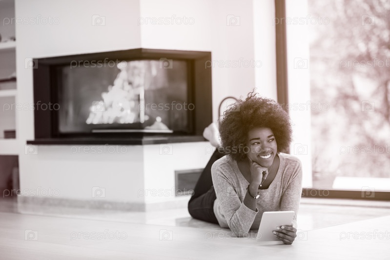 Женщина с планшетом у камина