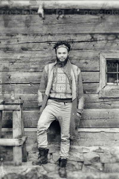 Мужчина у деревянного дома