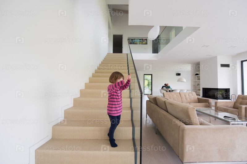 Семья с маленькой девочкой в современной гостиной