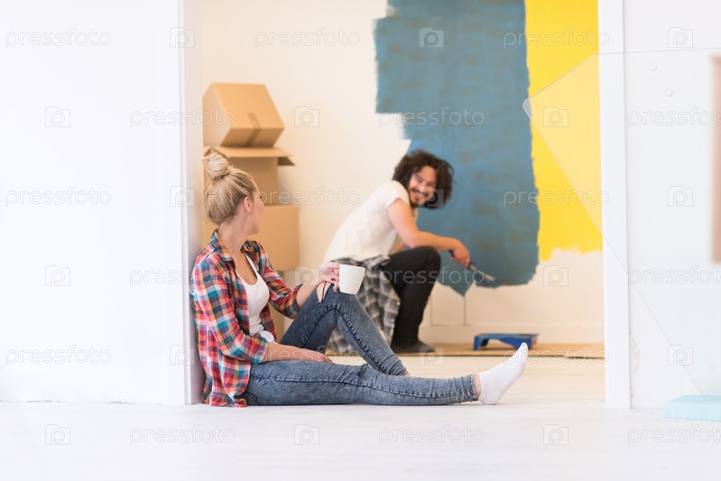 Молодая пара делает ремонт дома