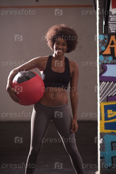Черная женщина, несущая мяч для кроссфитов