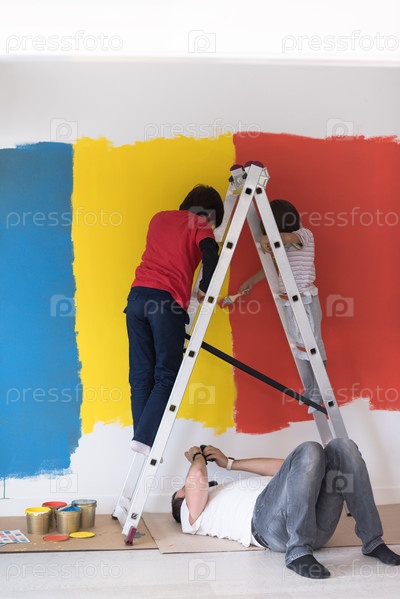 Мальчики красят стены