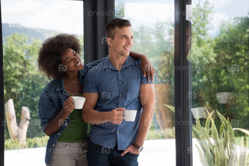 Романтическая молодая пара в современном доме