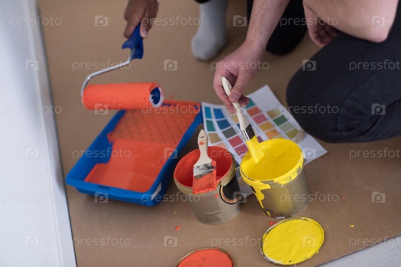 Художники готовят краску для рисования