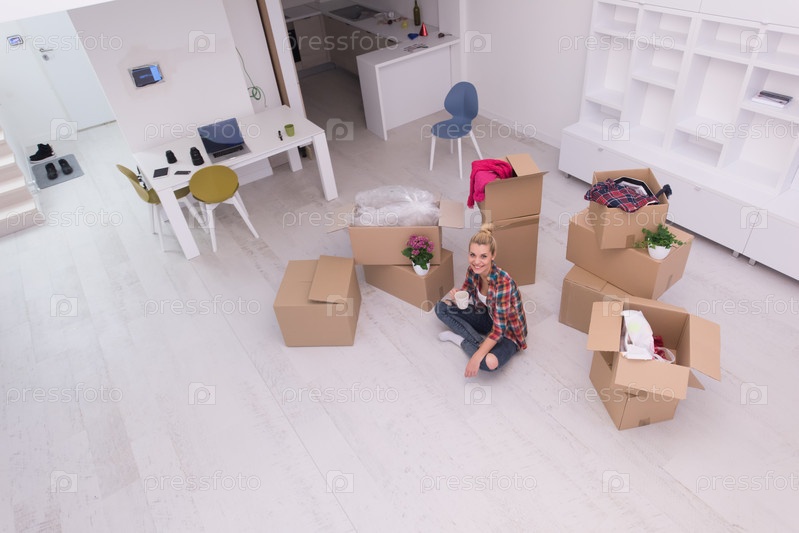 Женщина с большим количеством картонных коробок