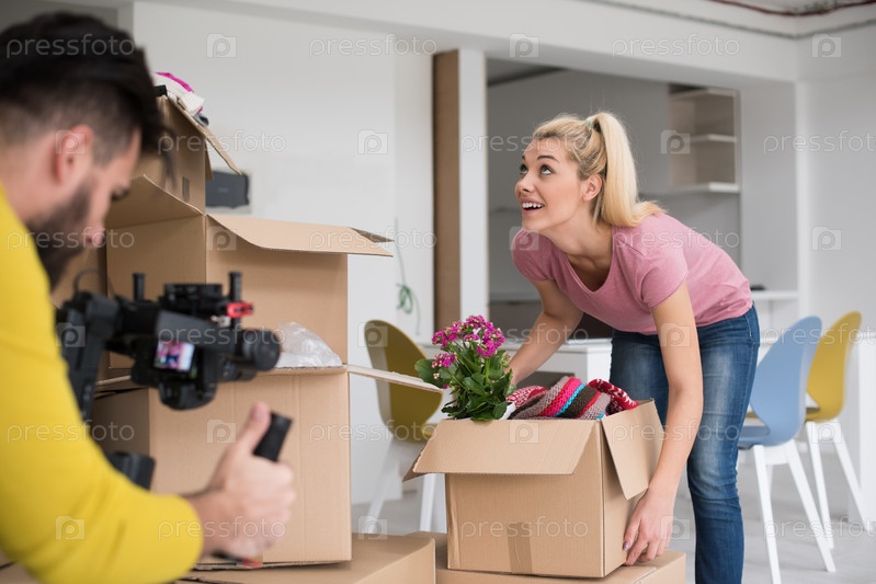 Девушка с коробкой вещей