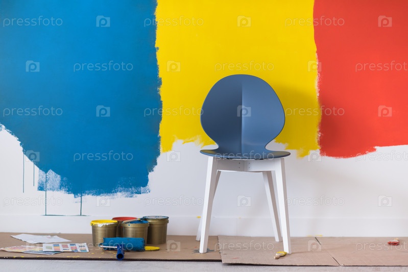Пустой стул и оборудование для покраски