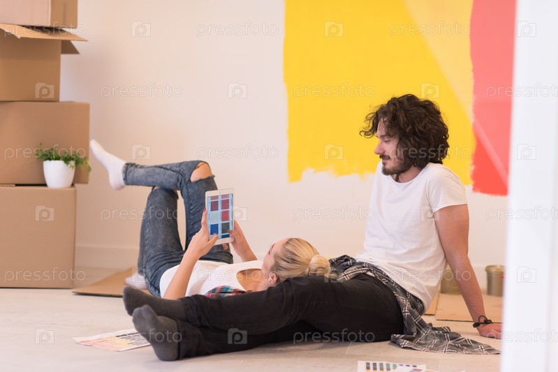 Счастливая молодая пара в новом доме