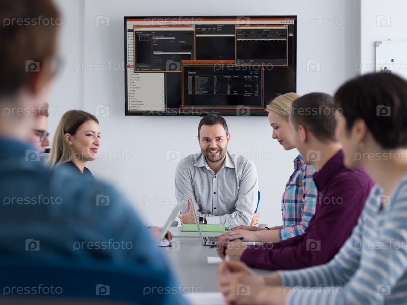 Бизнес-группа на совещании в современном офисном здании