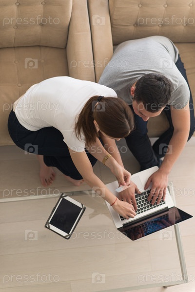 Счастливая пара за ноутбуком