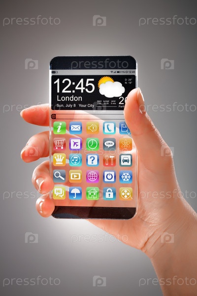 Смартфон с прозрачным экраном в руке