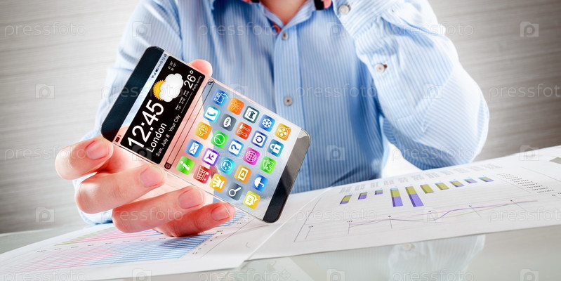 Смартфон с прозрачным экраном в руках