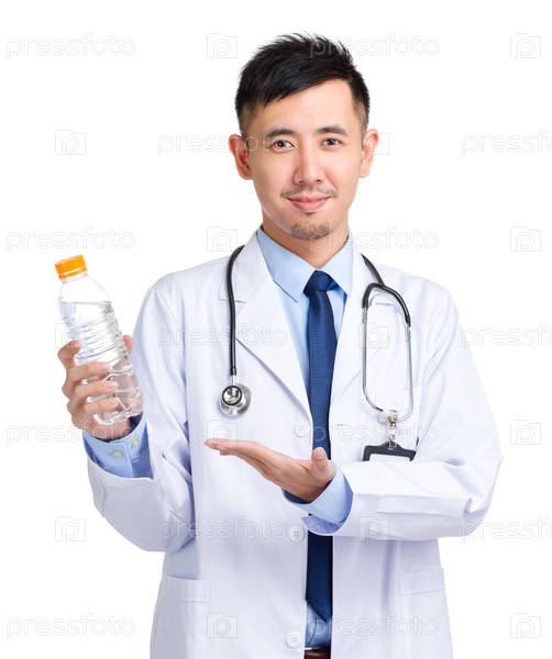 Азиатский врач с бутылкой воды