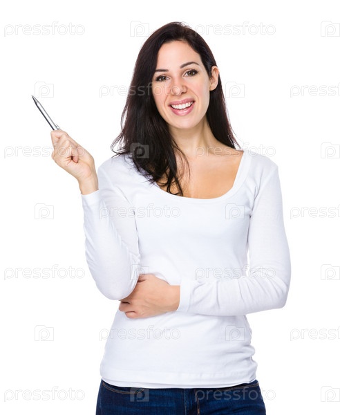 Брюнетка с ручкой