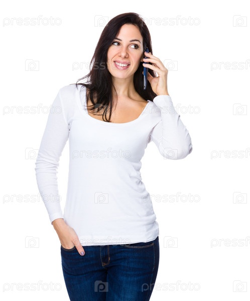 Брюнетка разговаривает по телефону