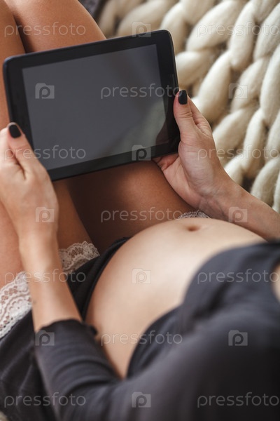 Беременная женщина с планшетом