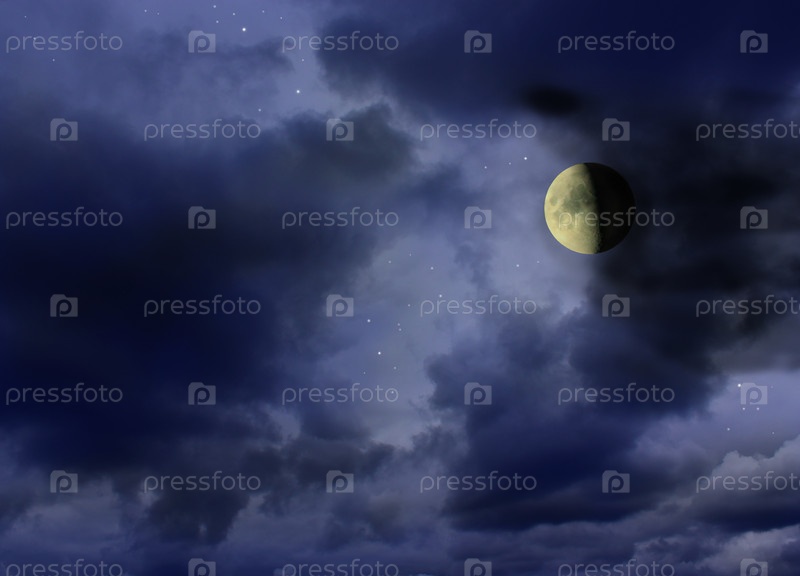Луна светится в темном ночном небе