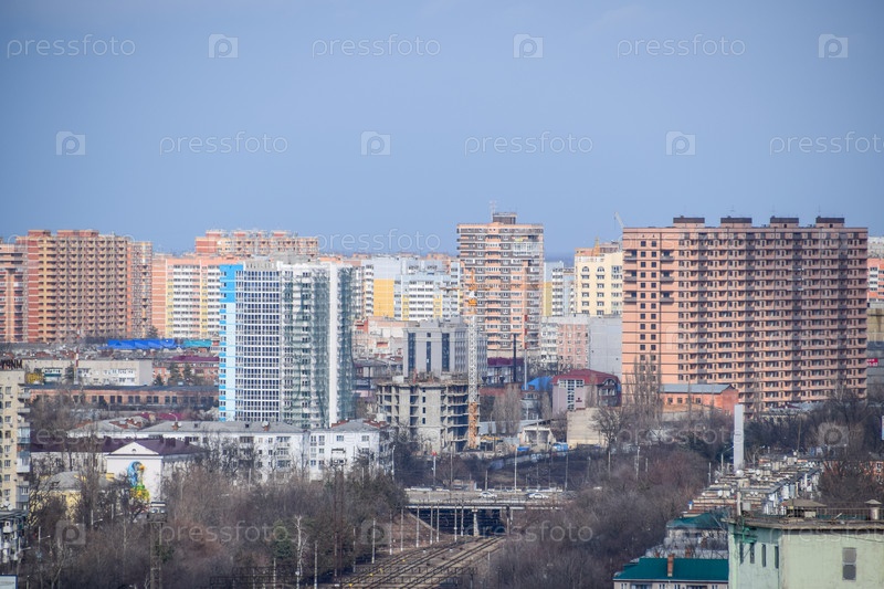 Городской пейзаж. Вид с высоты 24-го этажа. Город Краснодар