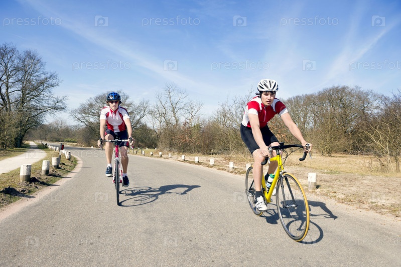 Два велосипедистов едут по дороге