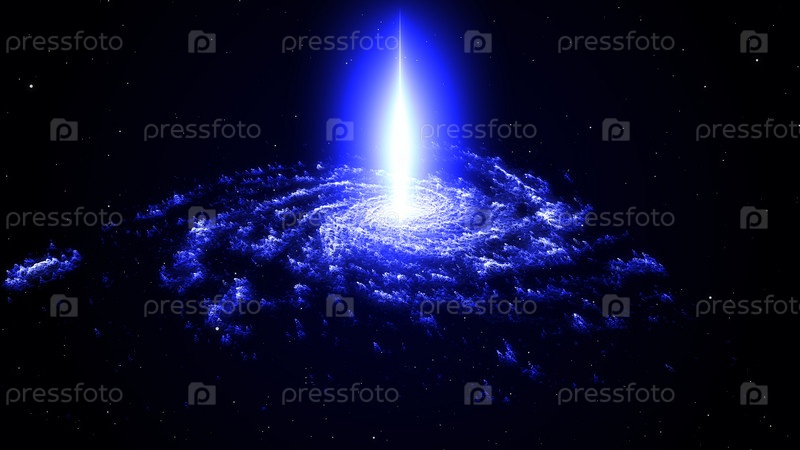 Спиральная туманность и световой луч в глубоком космосе